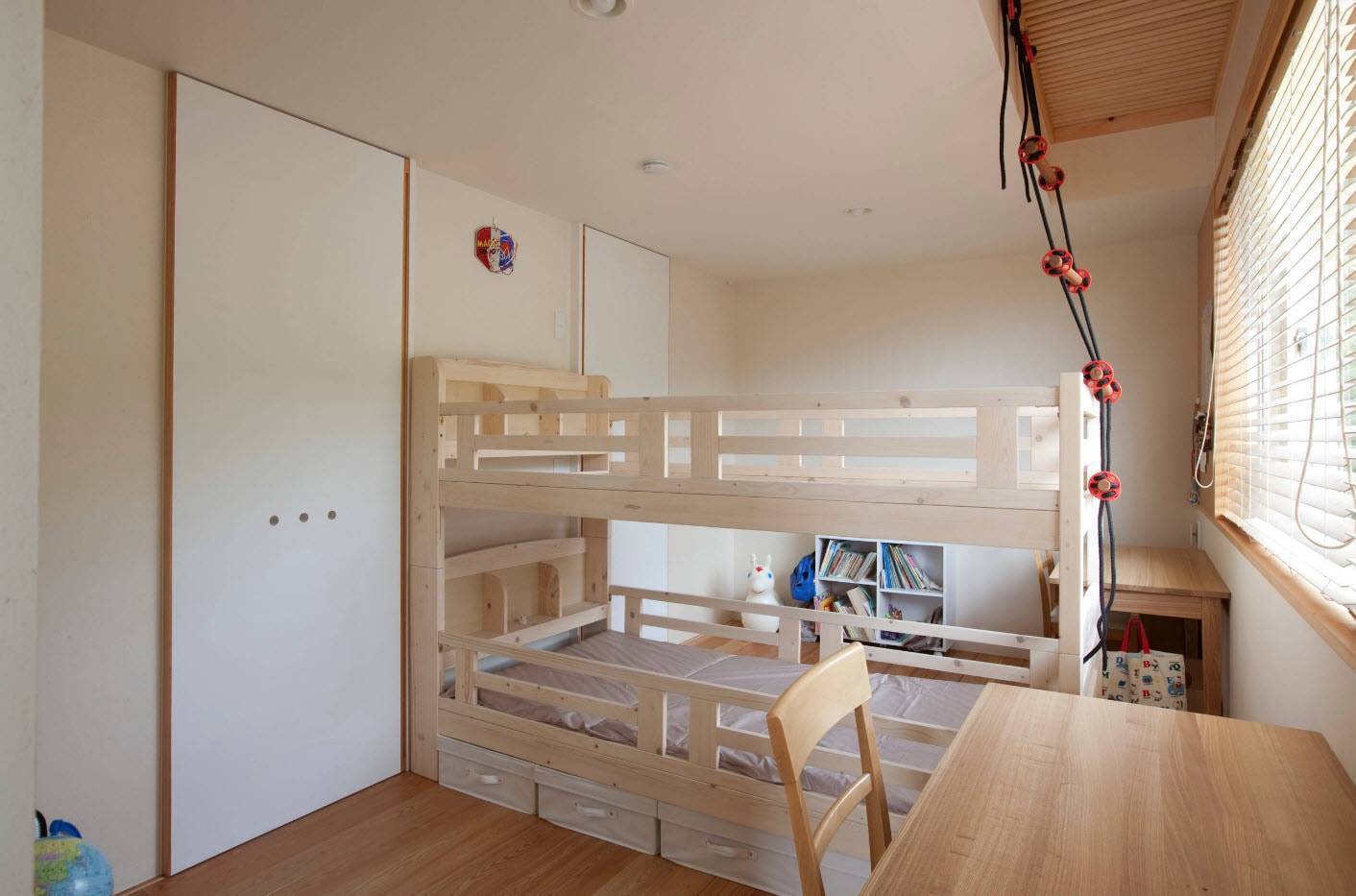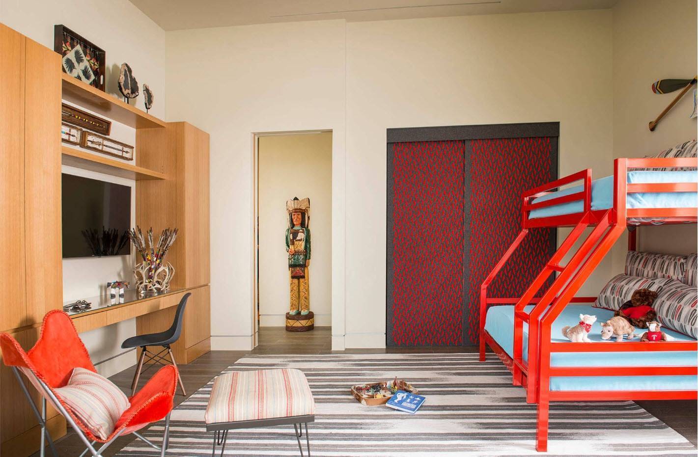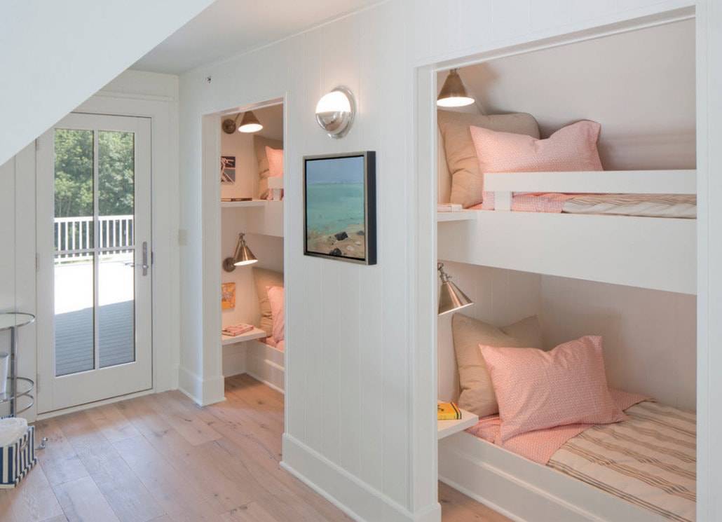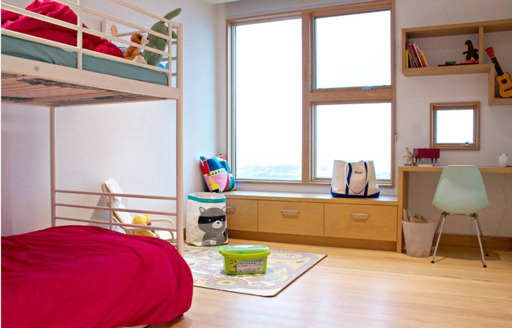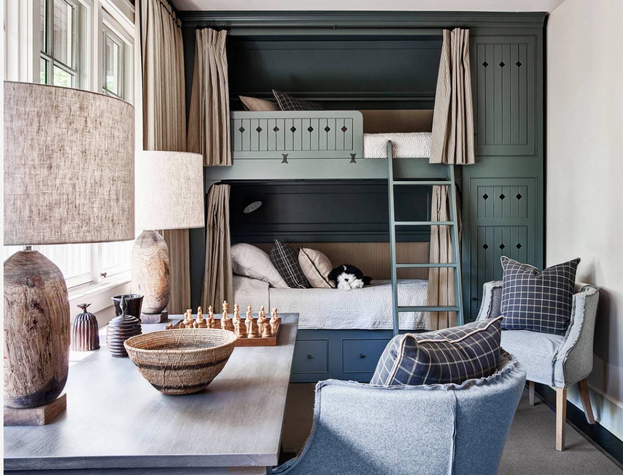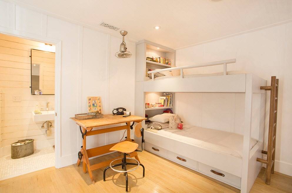 Двухъярусная кровать с письменным столом в «подчердачном» пространстве предназначена для маленькой комнаты Разработана Lauren Rubin Architecture