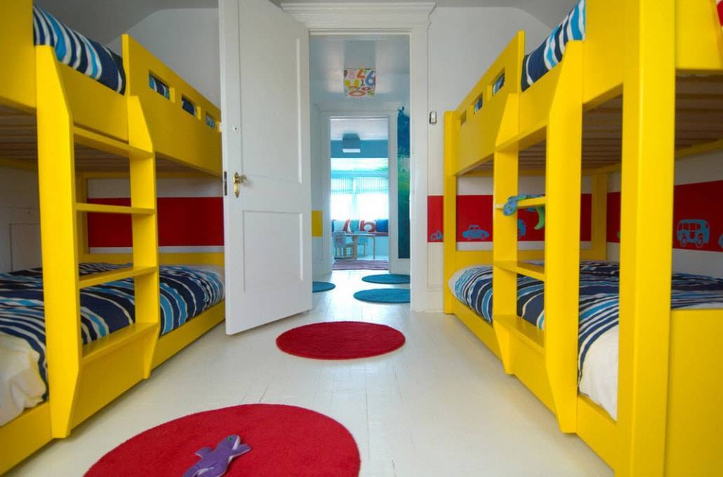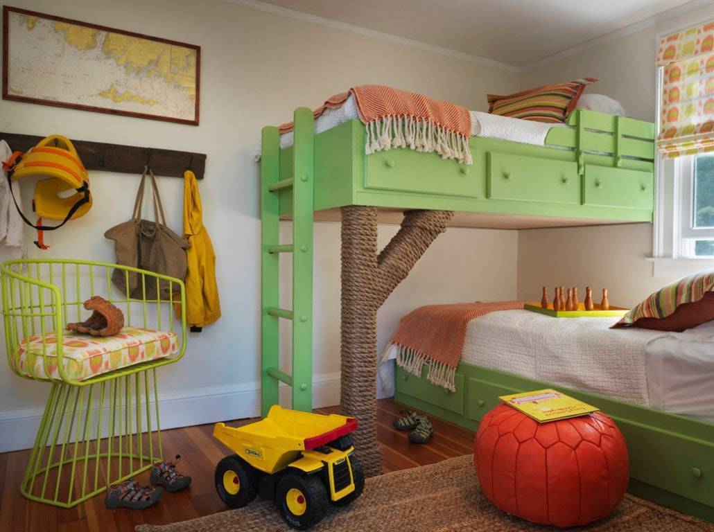 - Интересное детям интерьерное решение. В отличие от одноэтажной кровати, такой вариант можно и нужно оформить креативно, чтобы она была и украшением комнаты, и площадкой для детских игр.
