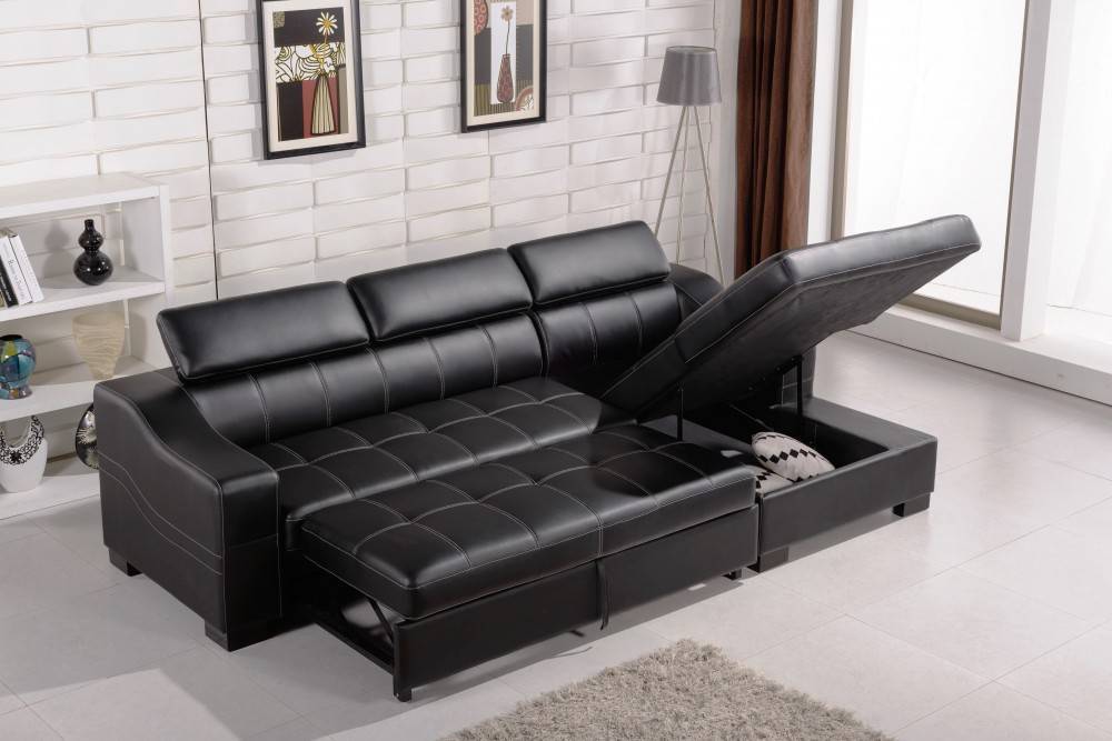 Раскладной диван с ящиками для хранения уместен в гостиной