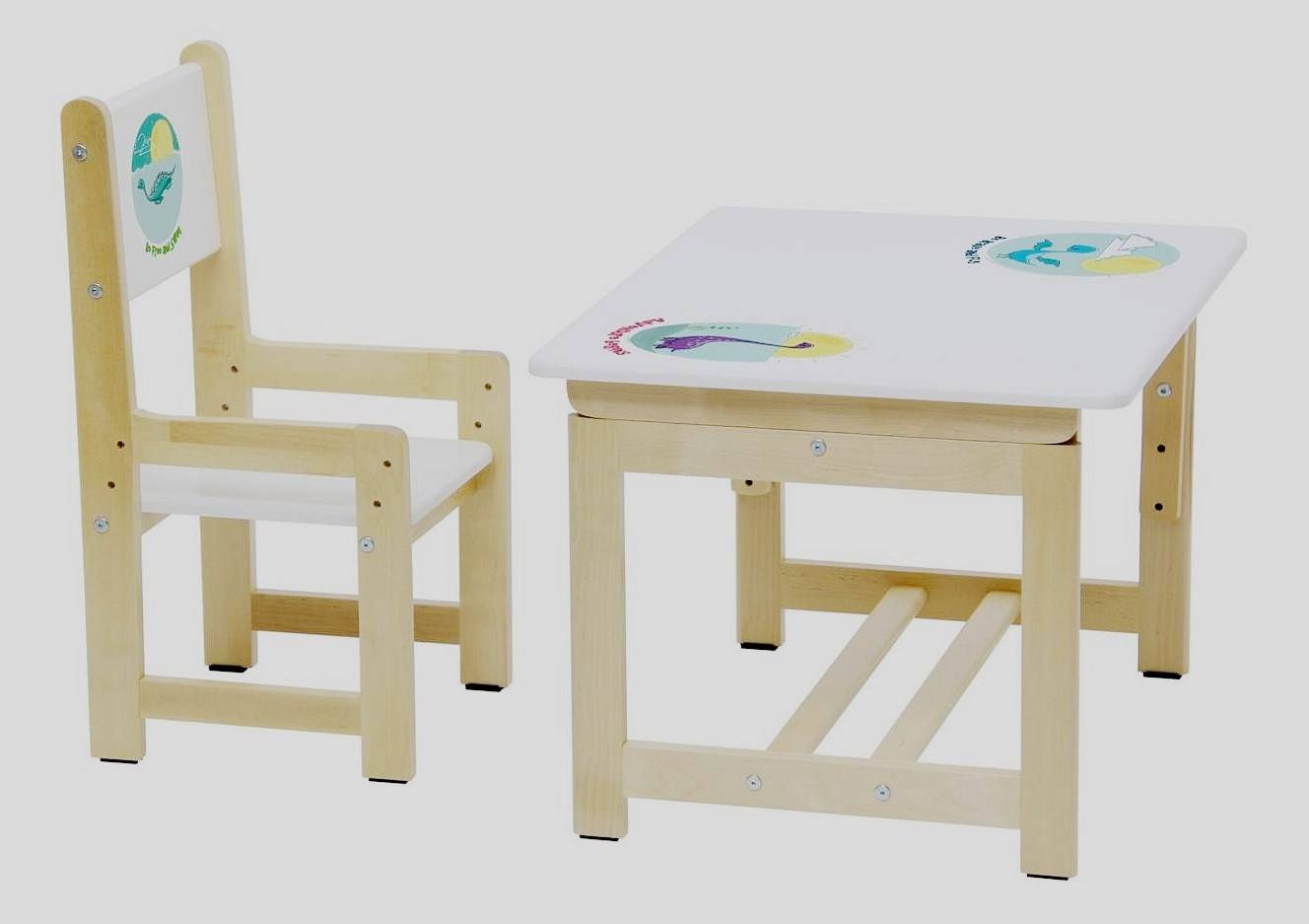 Продукция производится на вырост. Относится к категории экологически чистой. В наборе присутствует стол и стул. Изделия из натурального массива дерева, поверхность – МДФ. Предназначены для пользователей, достигших трех лет. Идеальный вариант творческого развития чада. Размеры компактные, много свободного места не занимает. Несмотря на свою простоту, товар достаточно функциональный. Производитель оснастил столик удобной подставкой для ног. Наклон столешницы можно отрегулировать по своему усмотрению. Стульчик в состоянии «расти» вместе с ребенком.