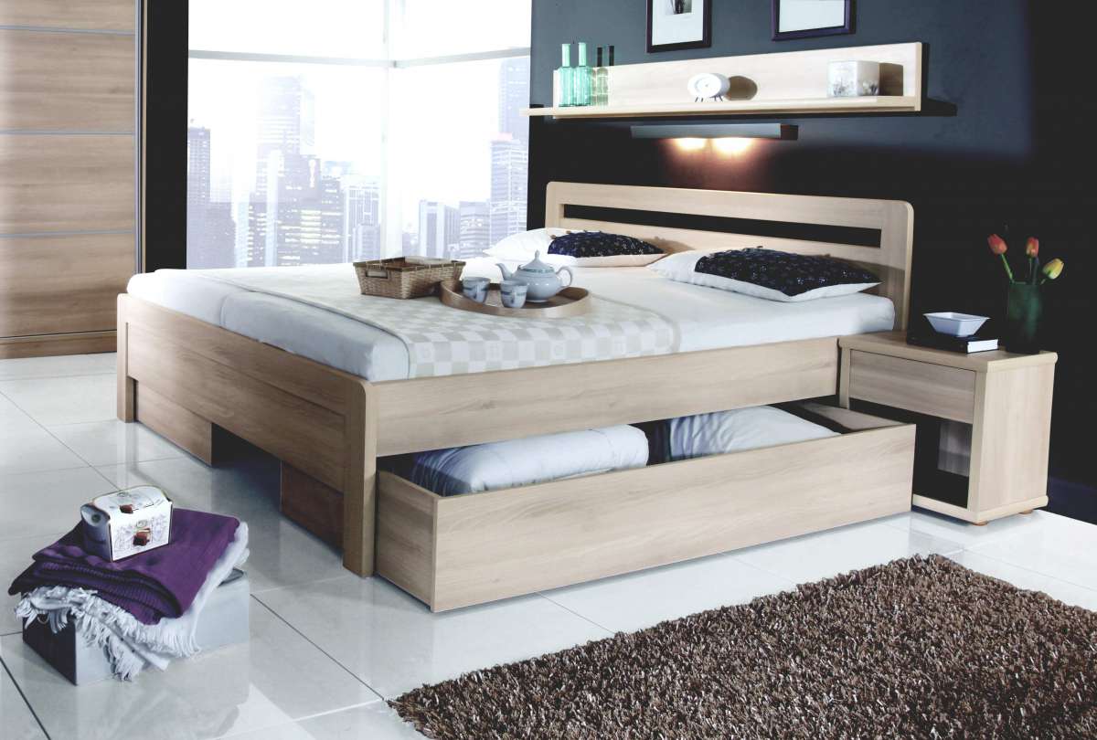 Для небольшой спальни лучше всего подойдет кровать с выдвижными ящиками