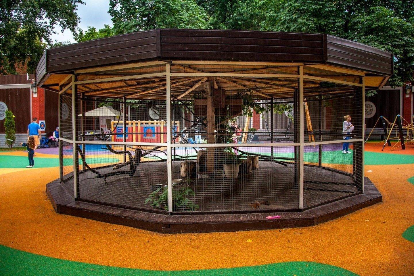 Так, например, в Измайловском парке можно найти площадку с сохраненным рельефом местности и настоящими бревнами и корягами, превращенными в станцию для игры с сыпучими материалами, а в парке Горького для юных исследователей построили мини-дамбу, с помощью которой можно перекачивать воду. Есть в Москве и детские локации с частичкой живой природы – например, на площадке в саду «Эрмитаж» расположился бельчатник, где малыши знакомятся с жизнью активных грызунов, а в Сиреневом саду рядом с детской площадкой разбили огород с растениями, которые сажают и поливают ее маленькие посетители.