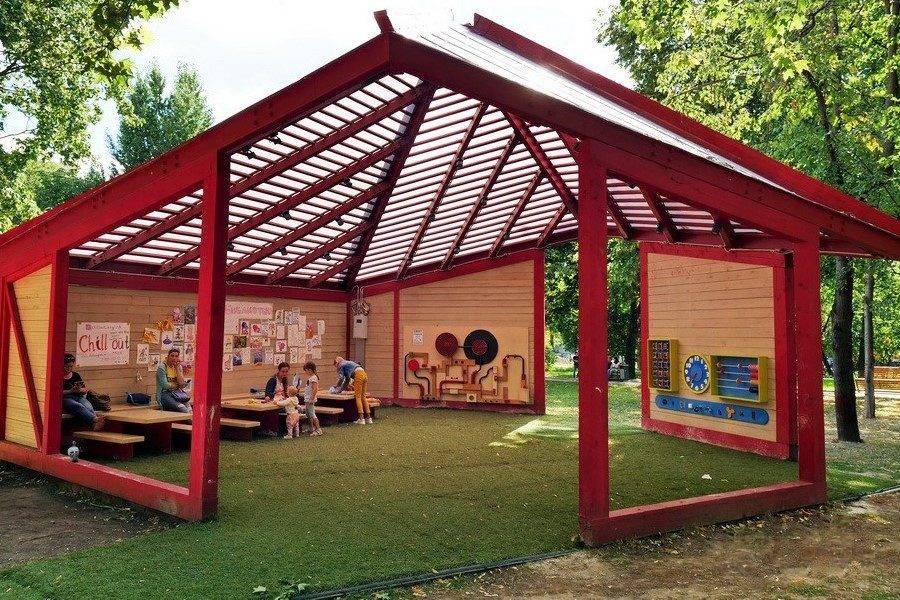 Помимо игровых пространств, на детских площадках важна и сопутствующая инфраструктура, удобная не только для детей, но и для тех, кто их сопровождает. Это наличие туалетов и рукомойников, урн, современных лавочек, где родители смогут с комфортом находиться длительное время, пока их чадо играет. При разработке проекта нельзя забывать и о климатических условиях столицы – смена времен года не должна лишать детей возможности поиграть на свежем воздухе. Архитекторы сегодня снабжают детские пространства навесами или даже целыми крытыми павильонами от непогоды и жары, а также подсветкой, которая может несколько продлить для посетителей световой день.