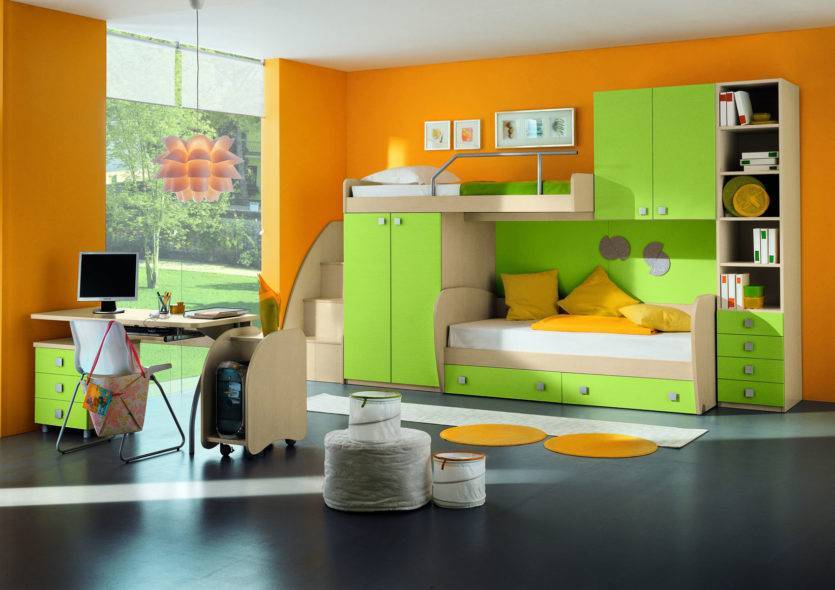 На сегодняшний день проблема по обустройстве комнаты для двух детей уже ушла в прошлое. Дизайнеры советуют приобрести двухъярусную кровать.