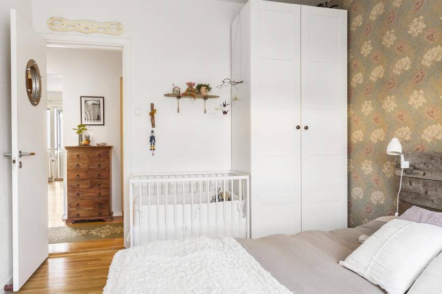 Спальня родителей в сочетании с зоной для новорожденного — это интерьер, в котором, вероятно, стоит использовать несколько способов оптимального использования доступного пространства. Здесь, например, отличным решением будет поиск кроватки с комодом и пеленальным столиком или комодом с прикрепленным пеленальным столиком. Добавим здесь, что сам пеленальный столик чаще всего можно разобрать позднее, получив обычную кроватку или комод.
