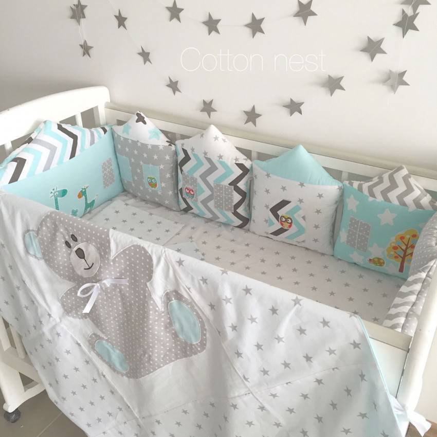 Они включают в себя мягкие бортики в кроватку для новорожденных.