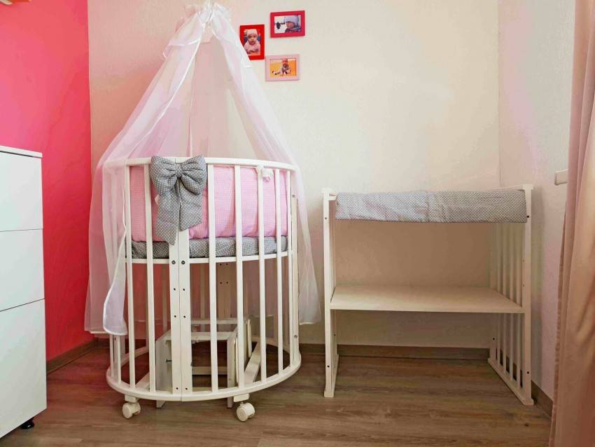 Современные детские кроватки оснащенные небольшими колесиками. Это обеспечивает мобильность изделию.