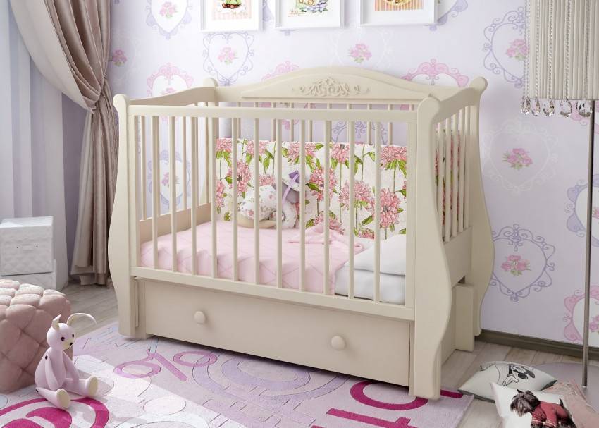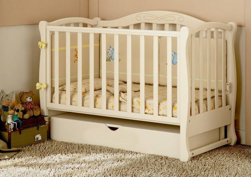 Особое внимание родителей привлекает детская кроватка маятник, фото которой вы видите ниже. Такая модель очень красива и раскачивается легким движением пальца