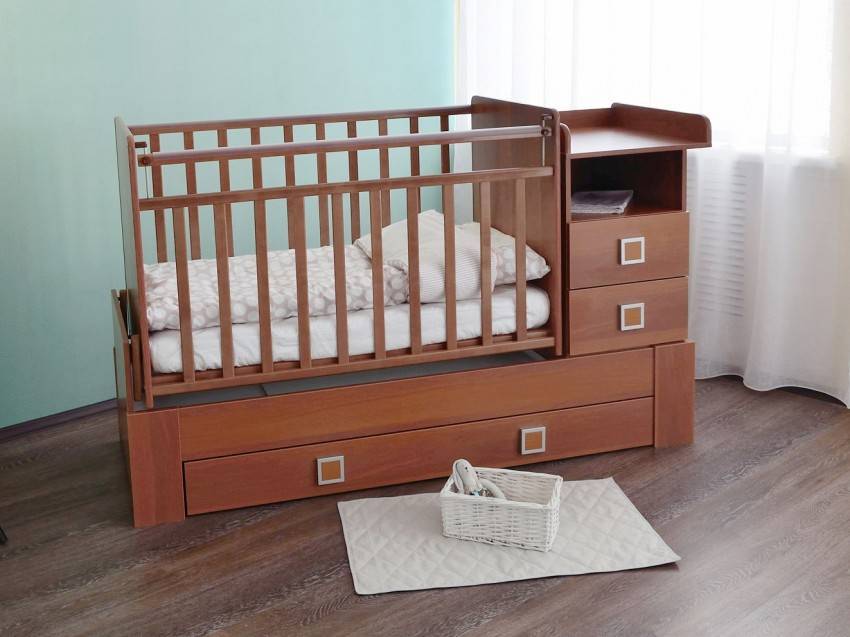 В процессе выбора мебели для маленьких детей необходимо уделить особое внимание дополнительным ящикам и комодам, которые идут в комплекте с кроваткой