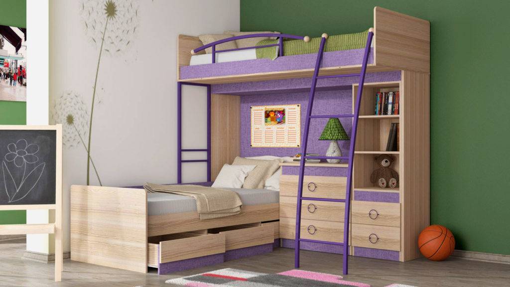 Для разнополых детей обычно сложно разделить пространство, так как у каждого ребенка будут свои предпочтения, увлечения и занятия. Но есть выход из этой ситуации, если подобрать кровать «правильной конструкции».
