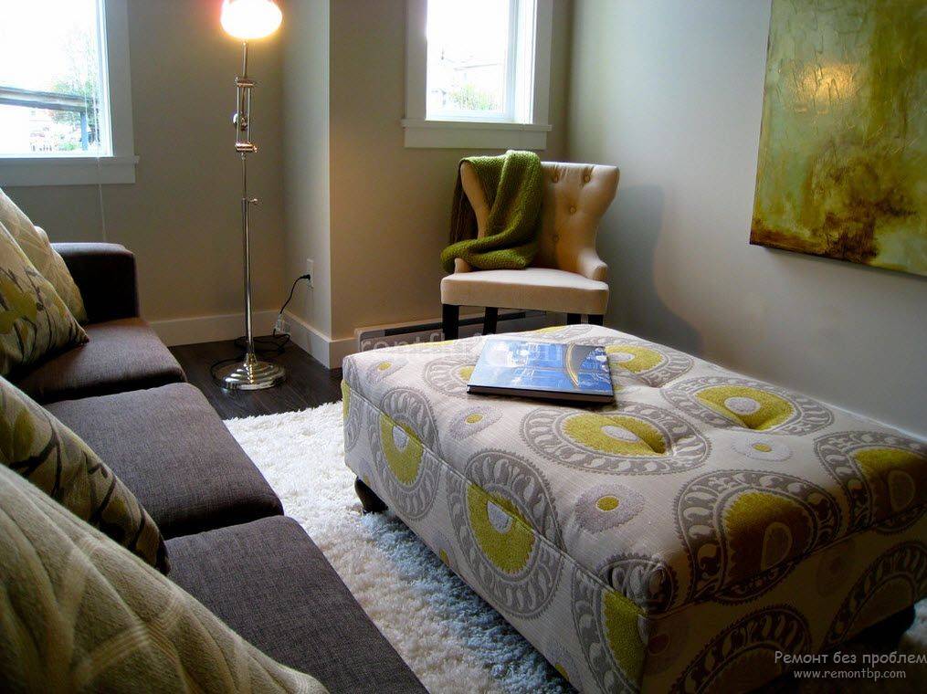 Так как пуфик не имеет спинки, в отличие от кресла и стула, то он способен добавить интерьеру свежести, простора и легкости