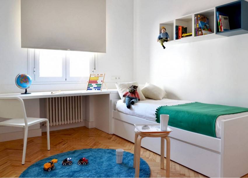 Если комната маленькая, отличный вариант для родителей и ребёнка – стол-подоконник в детской комнате. Так и дневной свет будет попадать на рабочее место ученика и комната визуально станет больше. Если же нужен стол в детскую комнату для двоих детей – стол-подоконник станет прекрасным вариантом.
