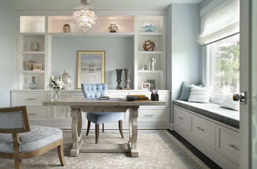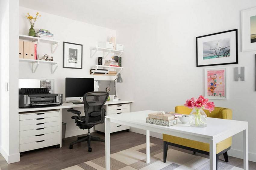 - симметрично расположенные письменные столы, они могут быть размещены рядом или в разных частях комнаты.