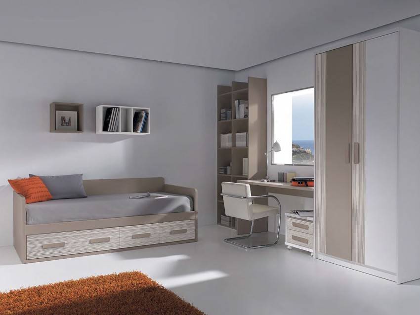 Модульные конструкции, которые совмещают сразу несколько функциональных зон, позволяют значительно экономить пространство и не задумываться об организации их в помещении. Модули могут сочетать в себе спальное место, учебную зону, разнообразные системы хранения. Обычно такие варианты используются для маленькой комнаты, фото подскажут, как расставить модули. Большинство таких конструкций хорошо продуманы и удобны.