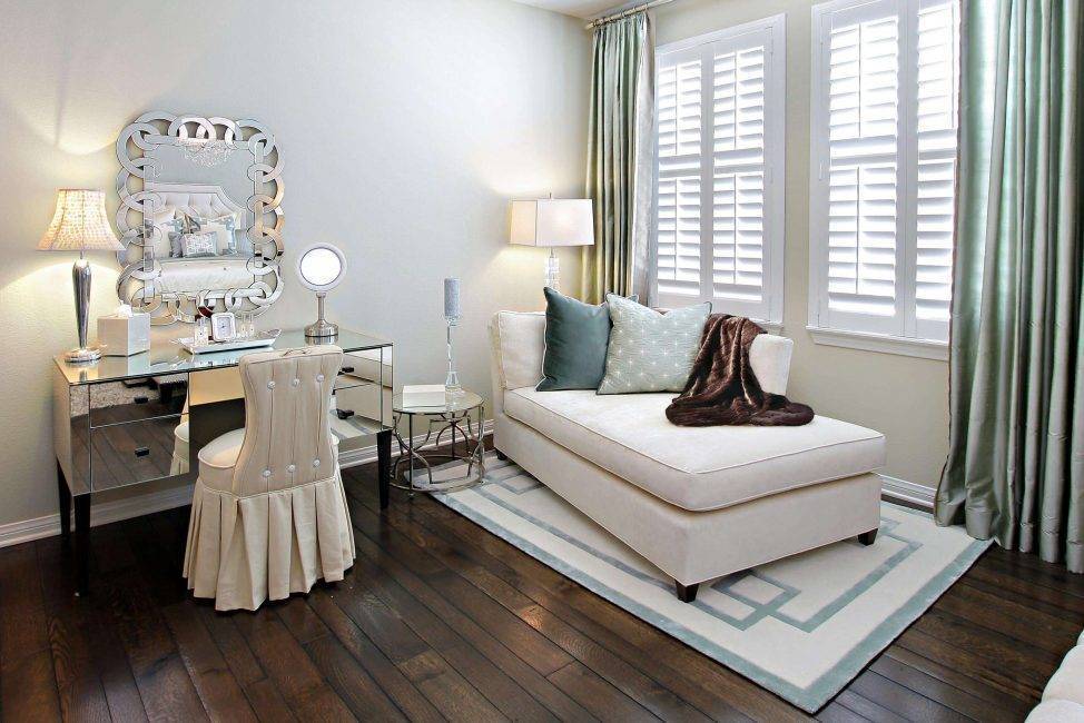 В небольшой гостиной каждый предмет мебели должен быть удобным, функциональным и лаконичным по форме. Это требование относится к шкафам, к дивану и, безусловно, к туалетному столику. Стоит подумать о том, чтобы он выполнял несколько функций.