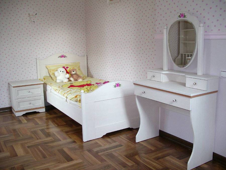 Многие производители предлагают готовые комплекты детской мебели с кроватью, тумбочкой и туалетным столиком