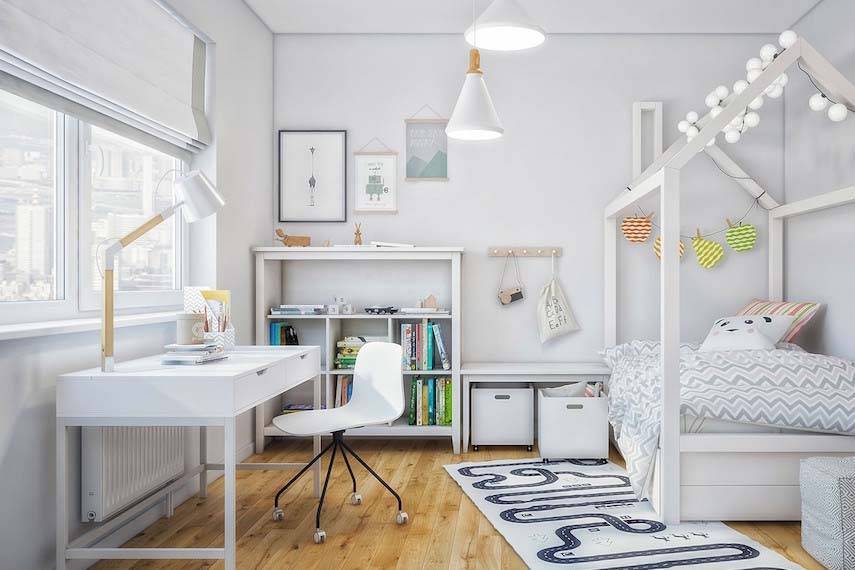 Мебель для детской комнаты выбирают соответственно возрасту. Лучше всего отдавать предпочтение нейтральным вариантам: коричневому, серому, белому или чёрному столу. Яркие акценты в комнате школьник расставит сам, но мебель в первую очередь должна быть практичной.