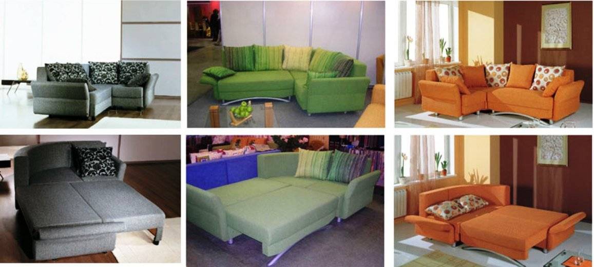 Угловые диваны могут быть с раздвижным или раскладным механизмом. В зависимости от этого в продаже есть такие модели: «аккордеон», «еврокнижка», американская раскладушка, «дельфин», «клик-кляк», выкатные. Популярностью пользуются диваны «еврокнижка» и «клик-кляк». Они удобны в использовании, занимают не много места, легко превращаются в спальное место (фото 4).