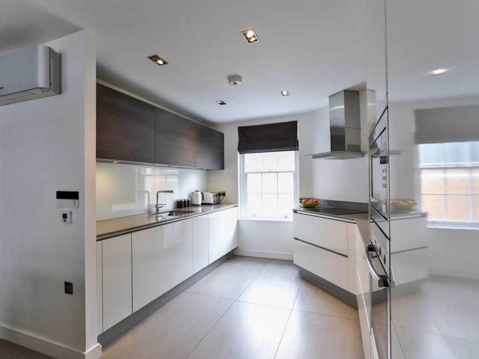 Для оформления кухонного пространства использовали качественный мебельный гарнитур немецкого производства. Оригинальная фурнитура добавляет роскоши в окружающее пространство. Сочетание глянцевых и матовых поверхностей создают изысканную атмосферу.