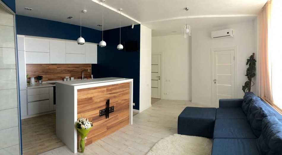 Фото 3 — Своеобразное зонирование гостиной комнаты и кухни