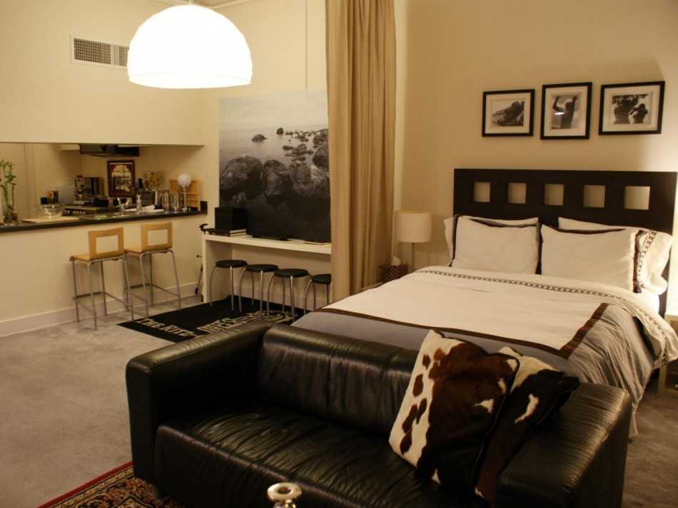 Или чердачный стиль. Характеризует неординарных личностей. Мебель искусственно состарена, добротна, строга, набор ее минимален, близко к стенам ее не располагают. Бывает так, что она играет роль перегородки в комнате. Стены, пол и потолок отделываются под кирпич или бетон.