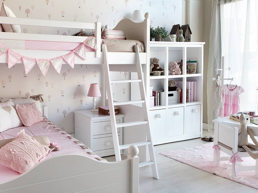 - установка двухъярусной кровати позволит сэкономить пространство и выделить зону отдыха для обеих девочек;