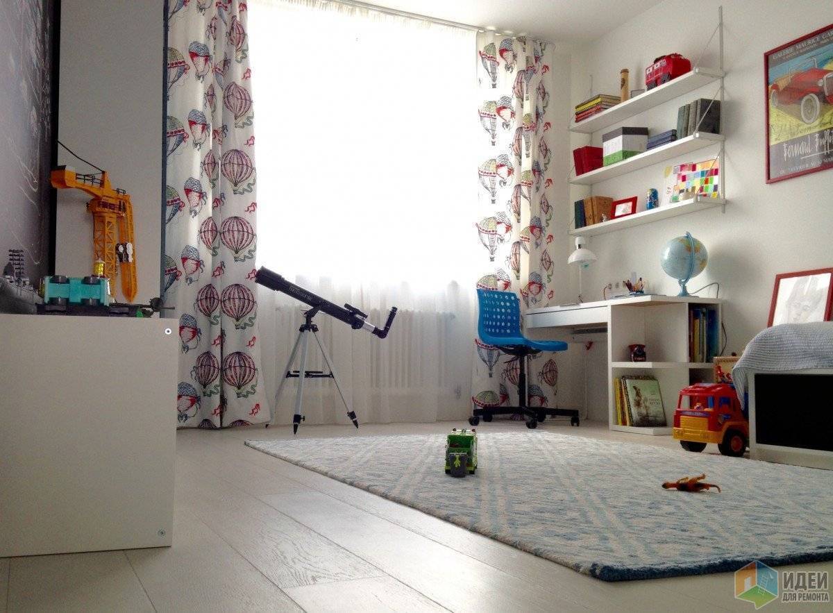 – Пример оформления окна в детской комнате мальчика в возрасте до 3 лет
