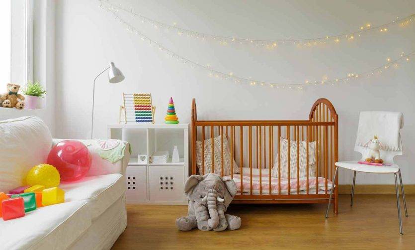 Кроватку, где будет спать новорожденный малыш лучше разместить возле родительского ложа, ближе к спальному месту мамы. В случае если комната имеет квадратную форму, колыбель можно установить напротив кровати родителей. Не рекомендуется размещение детской кроватки вблизи отопительных приборов, шумной бытовой техники и розеток.