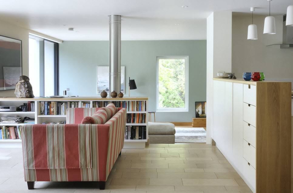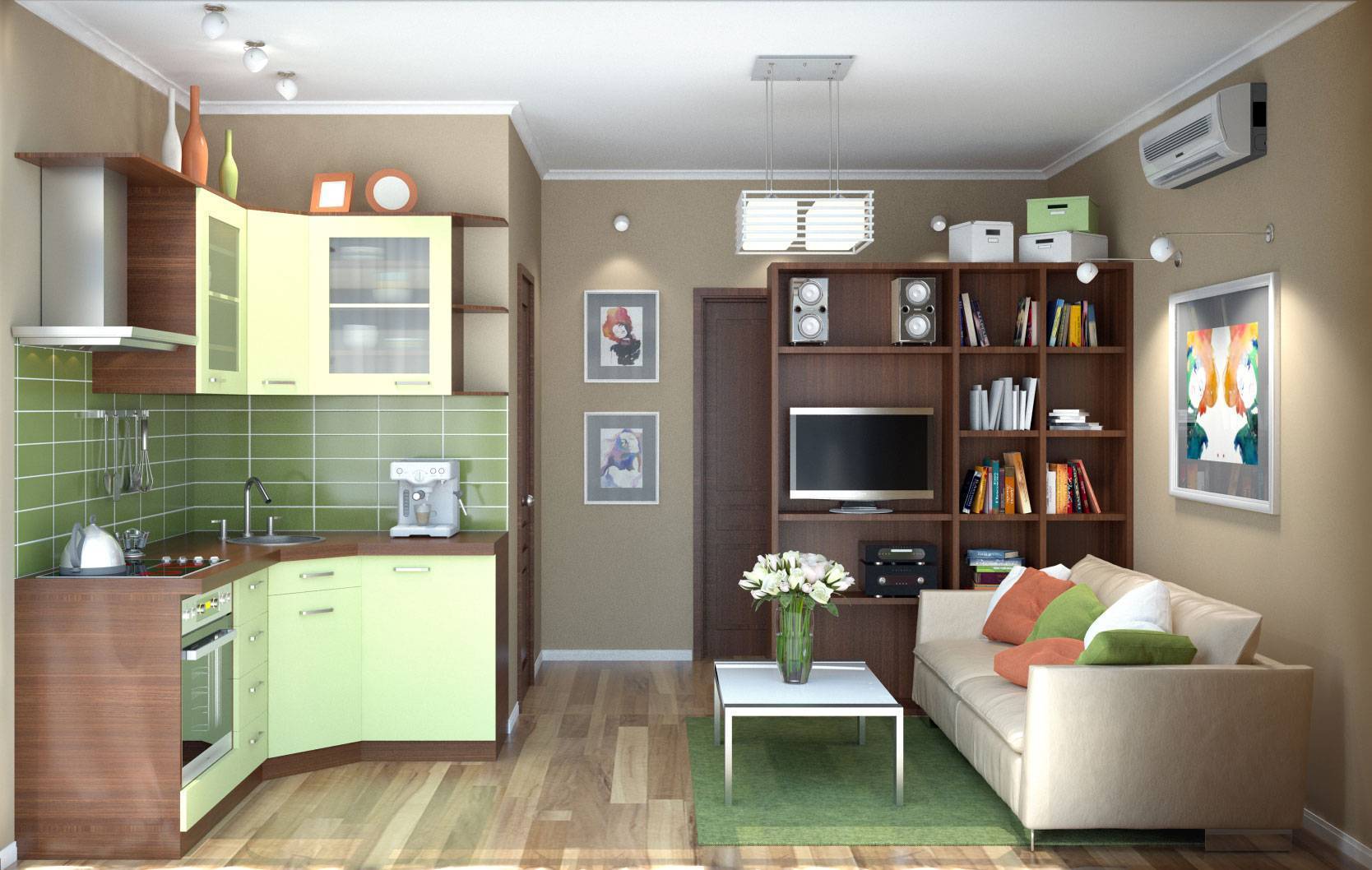 В первую очередь нужно заняться зонированием, для четкого разделения квартиры на зоны лучше использовать мебель. Для этого нужно использовать стеллажи, отказавшись от ширм. Большие письменные столы лучше заменить секретерами, а вместо шкафа купить большой и вместительный комод. Если все распланировать правильно, то можно сделать пространство не только функциональным, но и зрительно большим.