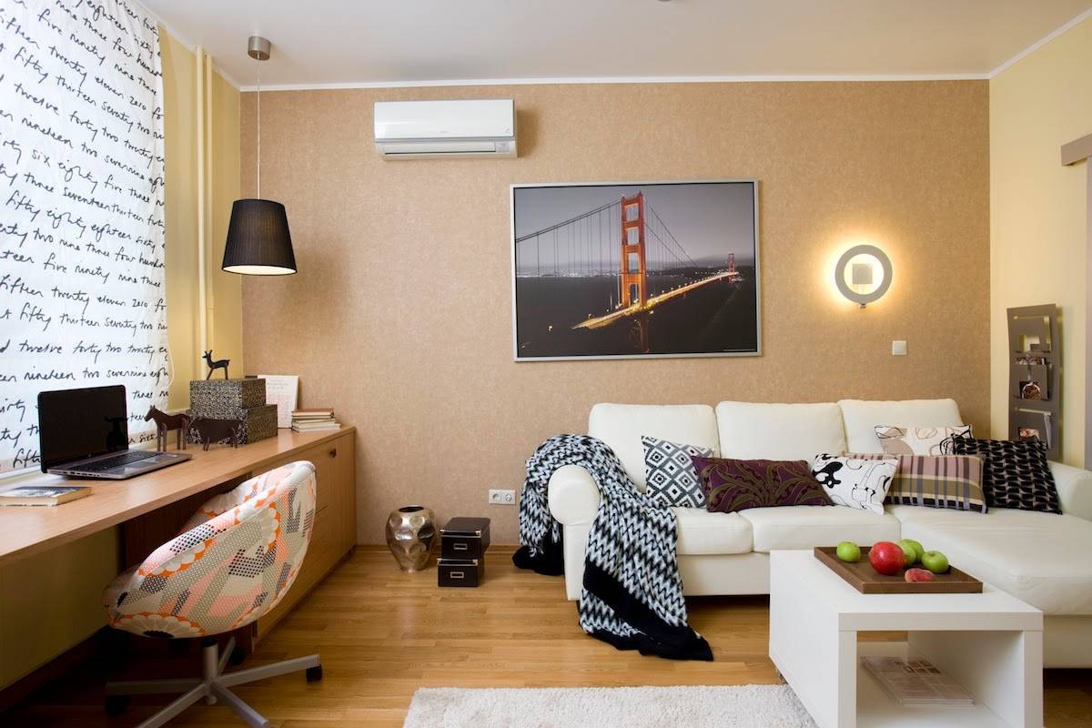 На фото дизайн гостевой комнаты в квартире 40 квадратных метров.