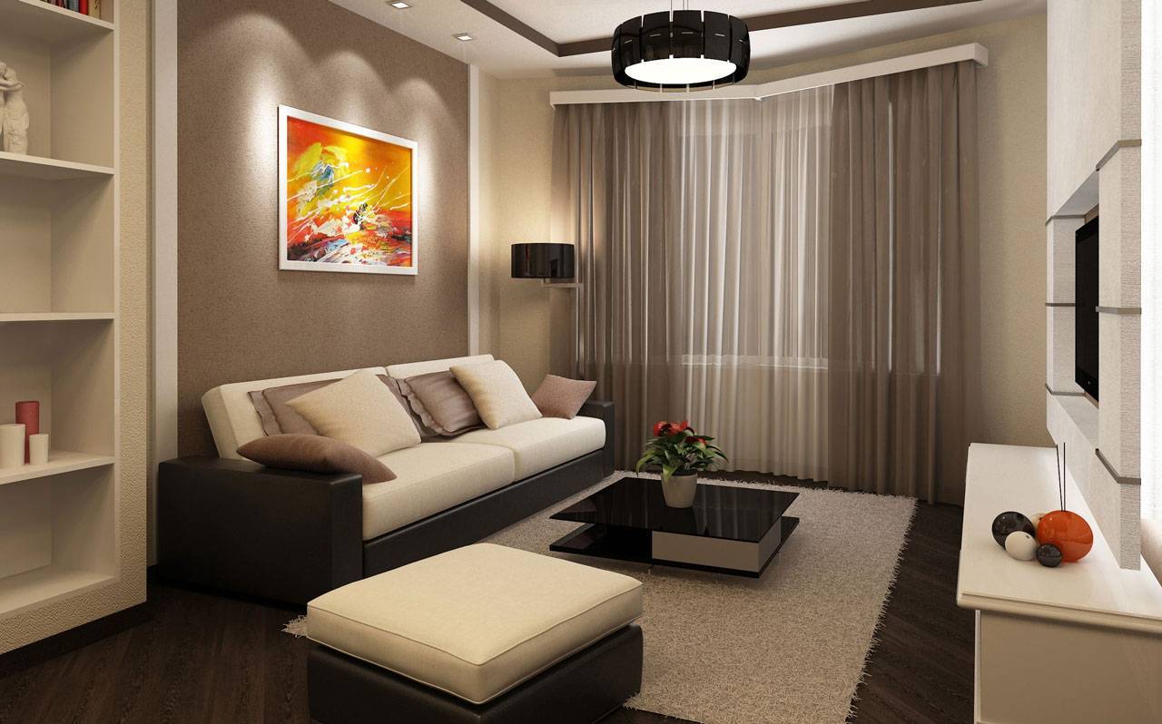 В небольшом зале, не желательно располагать слишком много мебельных предметов, чтобы не перегрузить помещение. Наделить обстановку гостевой комнаты особым стилем и комфортом, поможет мягкий ковер, разноформатная и разнотекстурная отделка стен, а также различные варианты освещения.