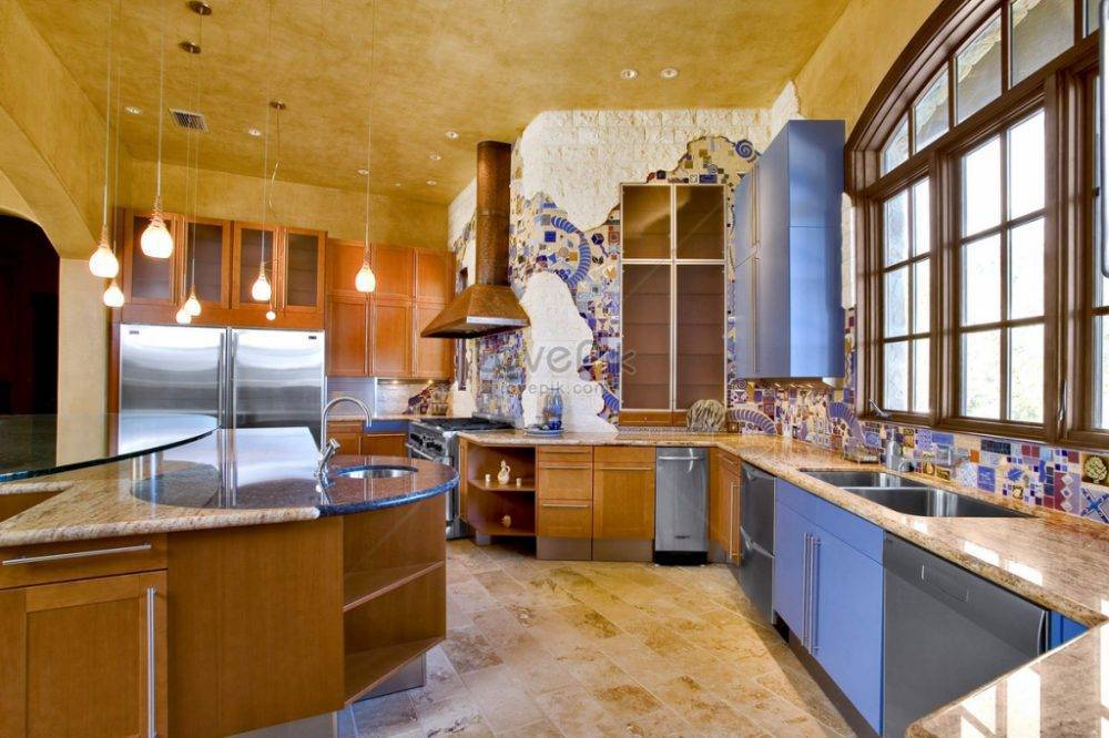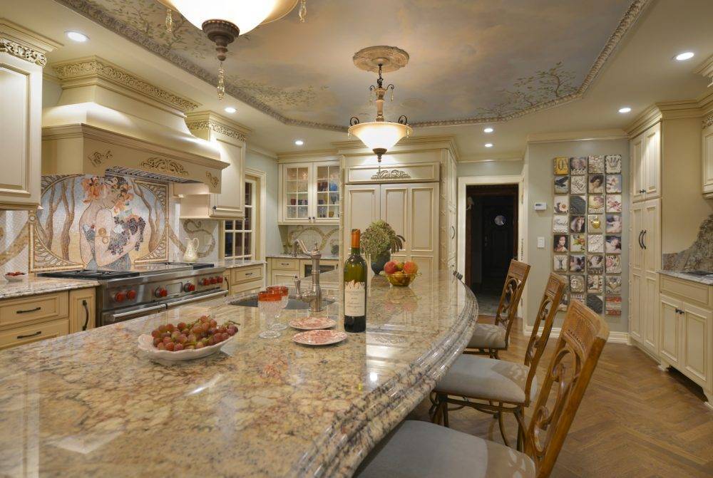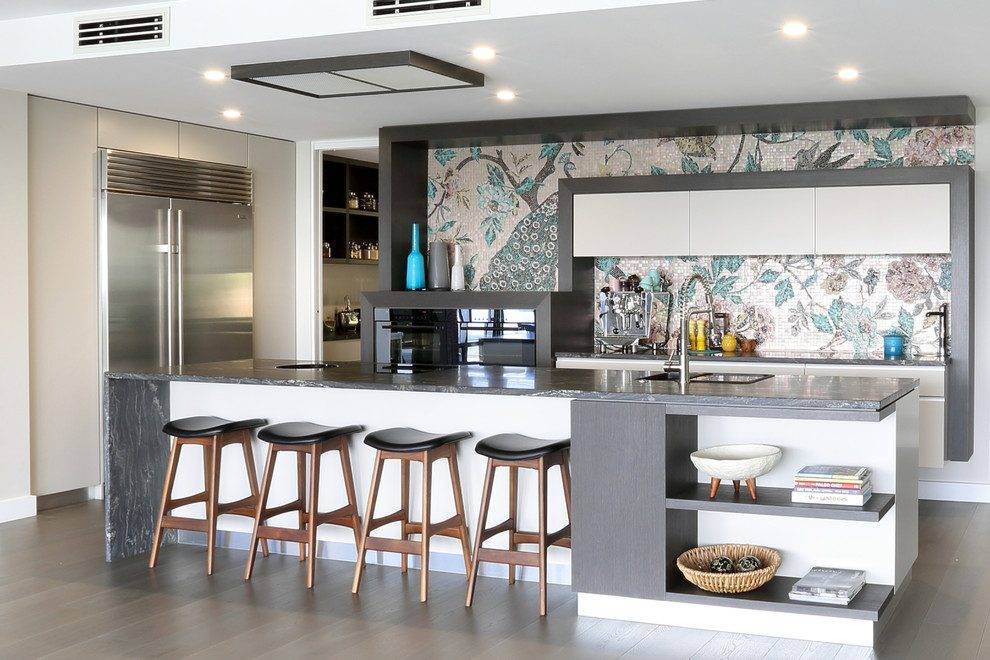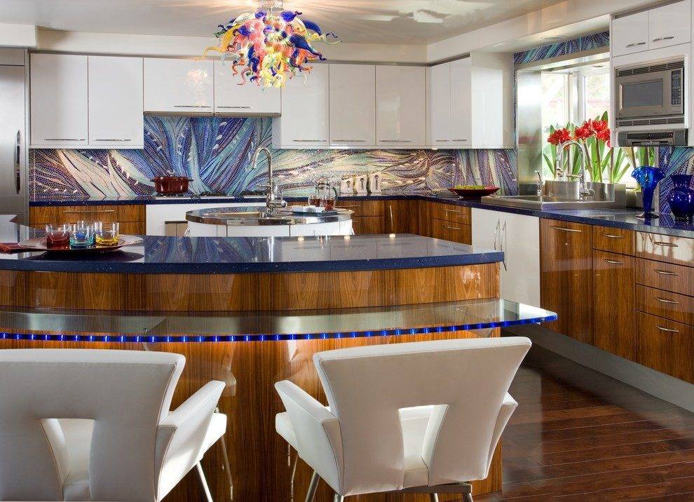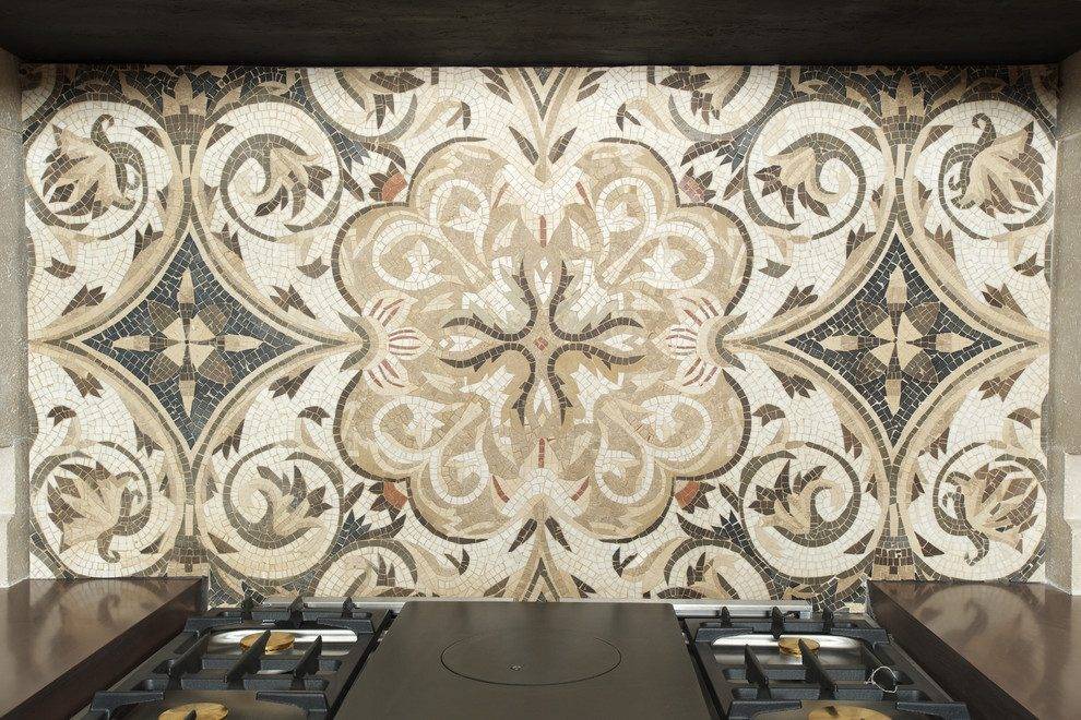 Роскошная кухня в стиле модерн с масштабным мозаичным панно