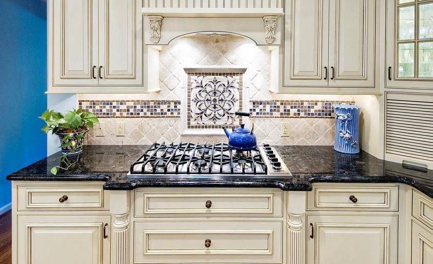 Плитка для кухни на фартук с узорами или изображениями цветов великолепно вписывается в винтажный стиль прованс. Красочная майолика удачно подчеркивают легкость и экзотичность восточного либо средиземноморского интерьера.