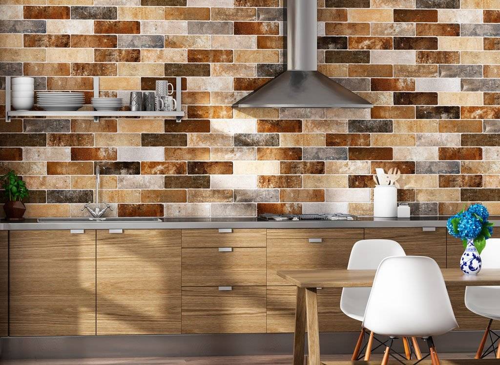 Этот вариант хорошо сочетается как с сельской, так и с современной комнатой. Металлические и имитирующие натуральный бетон варианты, а также отделанные в натуральных тонах идеально подойдут для минималистических и промышленных кухонь. Для этнических или деревенских интерьеров, выберите белые плитки в сочетании со стильными декором в естественных и теплых цветах. Плитка с броскими цветами, например, красным, будет стимулировать ваш аппетит и добавит немного остроты.