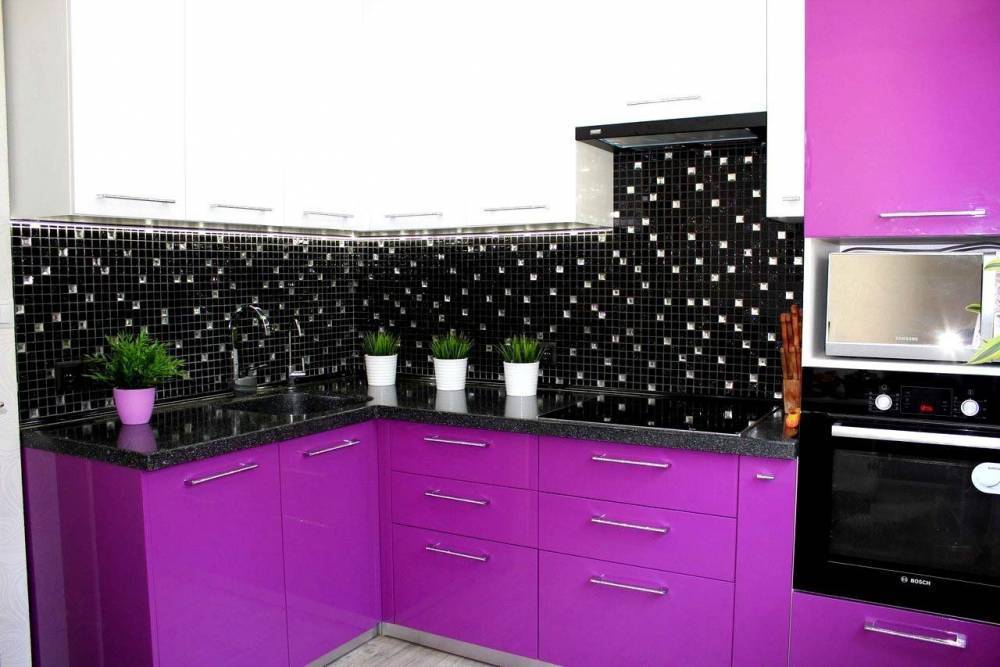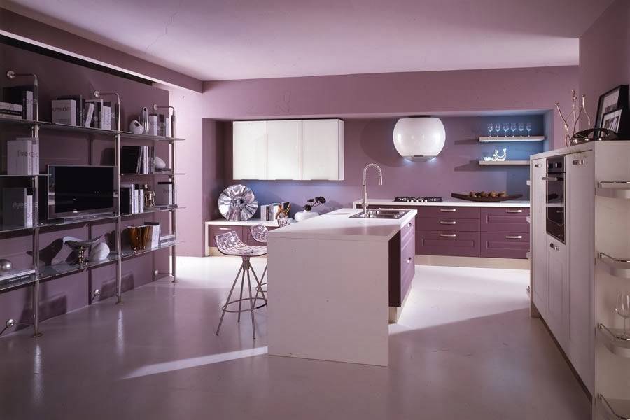 Дизайн кухни фиолетового цвета