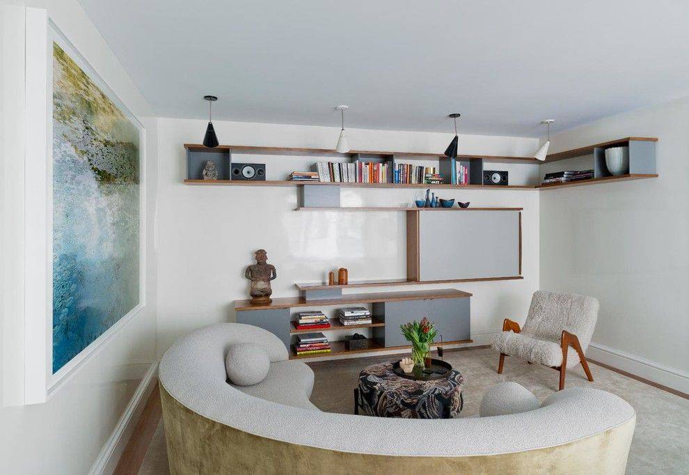 - однообразным книжным полкам и стеллажам следует придать больше динамичности, здесь формы могут быть самыми разными, кроме скучных.