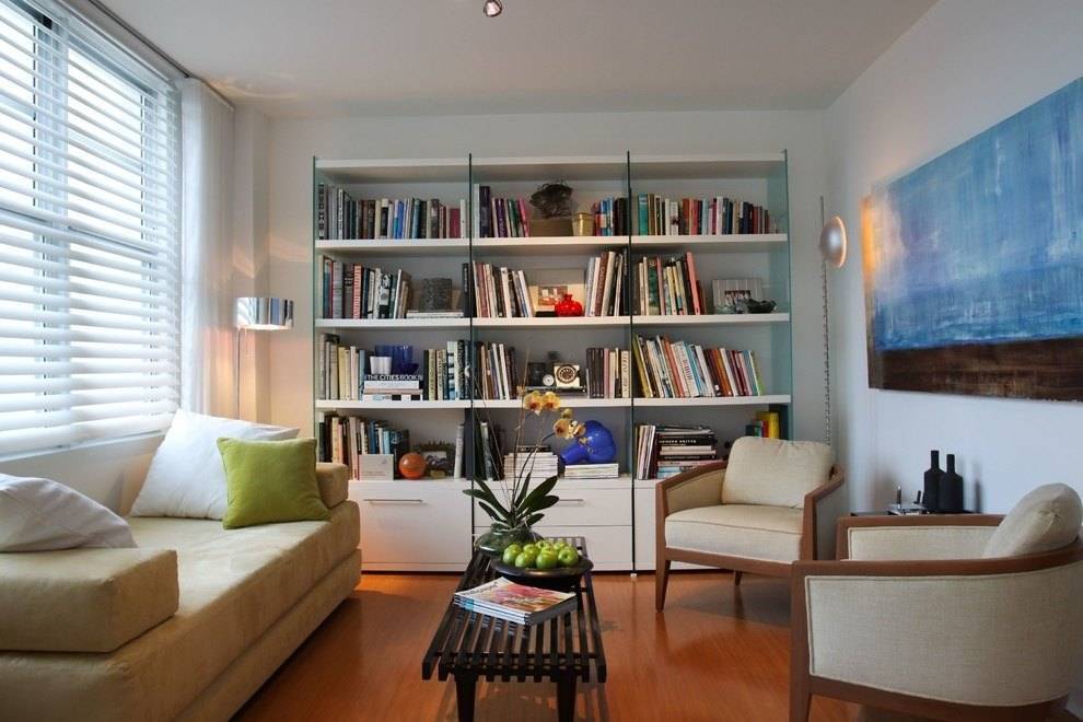 Для стильной небольшой гостиной больше подойдет мебель с тонкой конструкцией и изящными линиями – от массивной и приземистой лучше отказаться, ведь она будет тянуть все помещение к полу. Именно поэтому дизайнеры советуют выбирать легкие конструкции на ножках, которые будут словно парить в воздухе, создавая общее ощущение воздушности в гостиной. Тяжелые шкафы и секции стоит заменить легкими открытыми полками и стеллажами оригинальной конструкции, которые добавят комнате изящества.