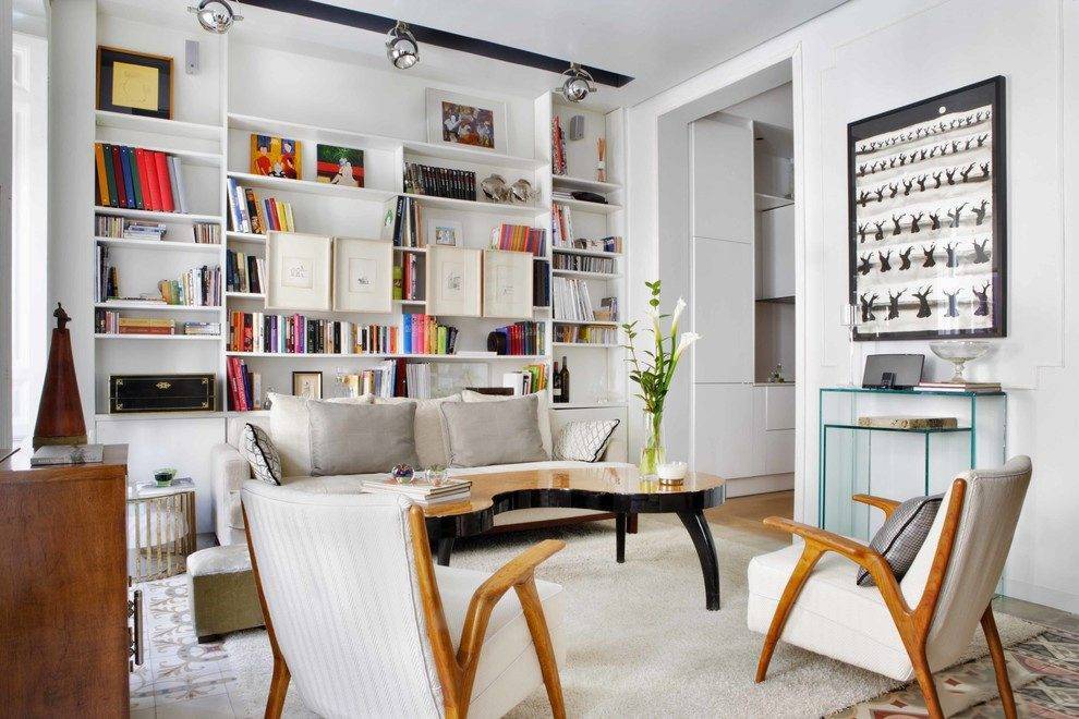 - Домашняя библиотека. Конечно, в гостиной как нигде в другом месте удобно ее расположить. В качестве хранилища для книг можно использовать открытые стеллажи или шкаф с раздвижными дверцами.