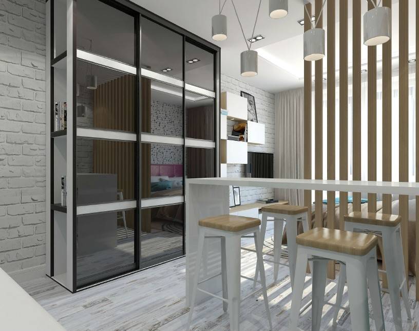 В любом случае, первое, на что нужно обратить внимание – вопрос зонирования. Для тех, кто не стремится превратить квартиру в open-space, без визуальной границы между кухней и комнатой не обойтись