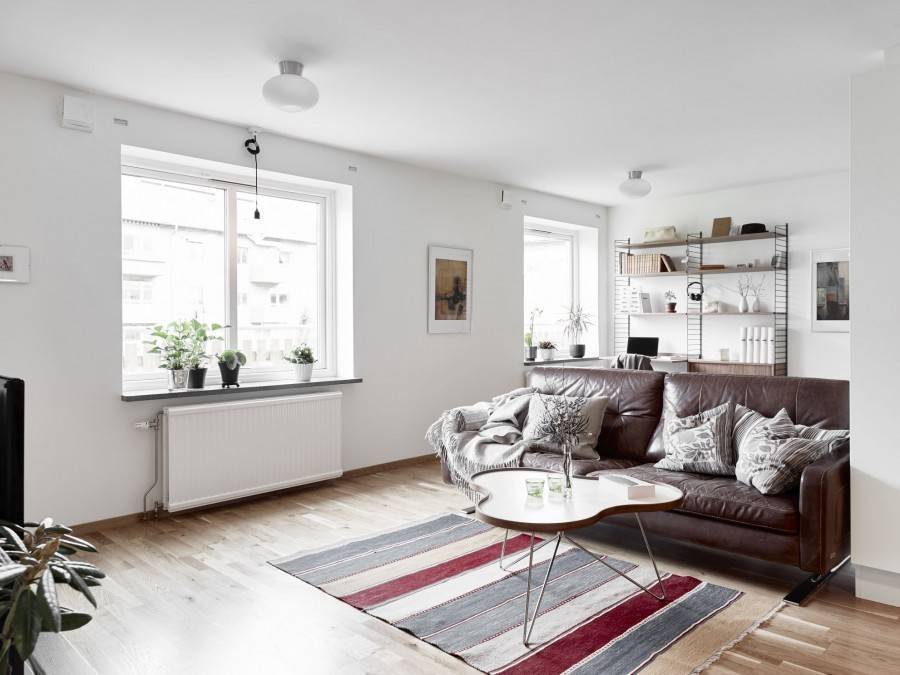 Впрочем, отказываться от более привычных решений не стоит – они тоже могут быть весьма любопытными. Даже самое простое сочетание заиграет, главное правильно подобрать оттенки – сделаете мягкую мебель темнее гарнитуров и подчеркнете это соответствующим ковром.