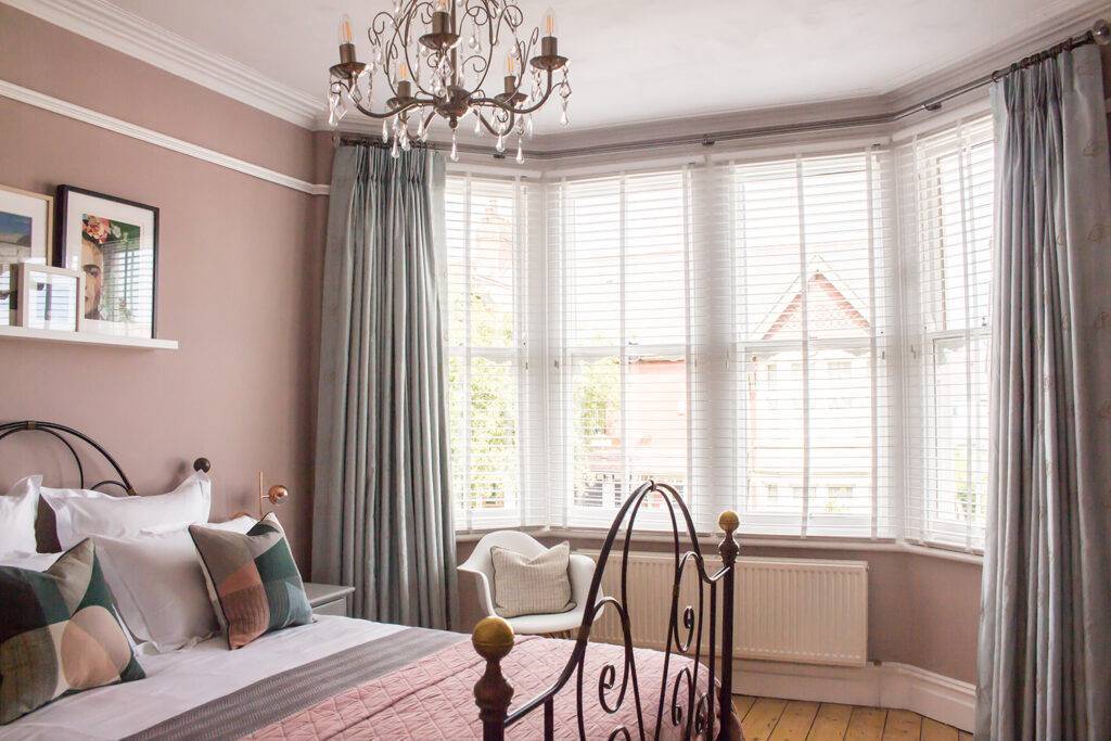 В один оттенок можно выкрасить всю комнату и стены эркера.