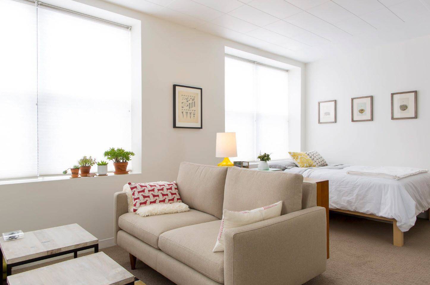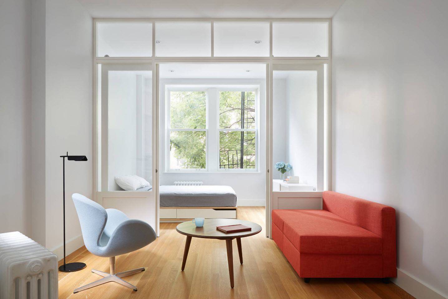Аскетичная спальня-гостиная