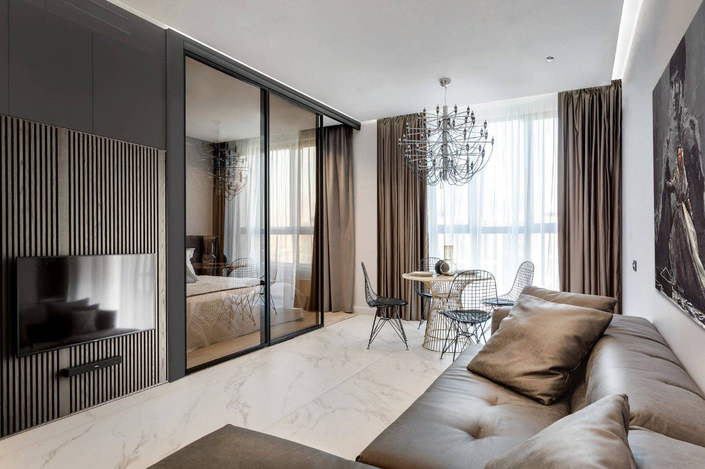 Раздвижные перегородки в спалне-гостиной