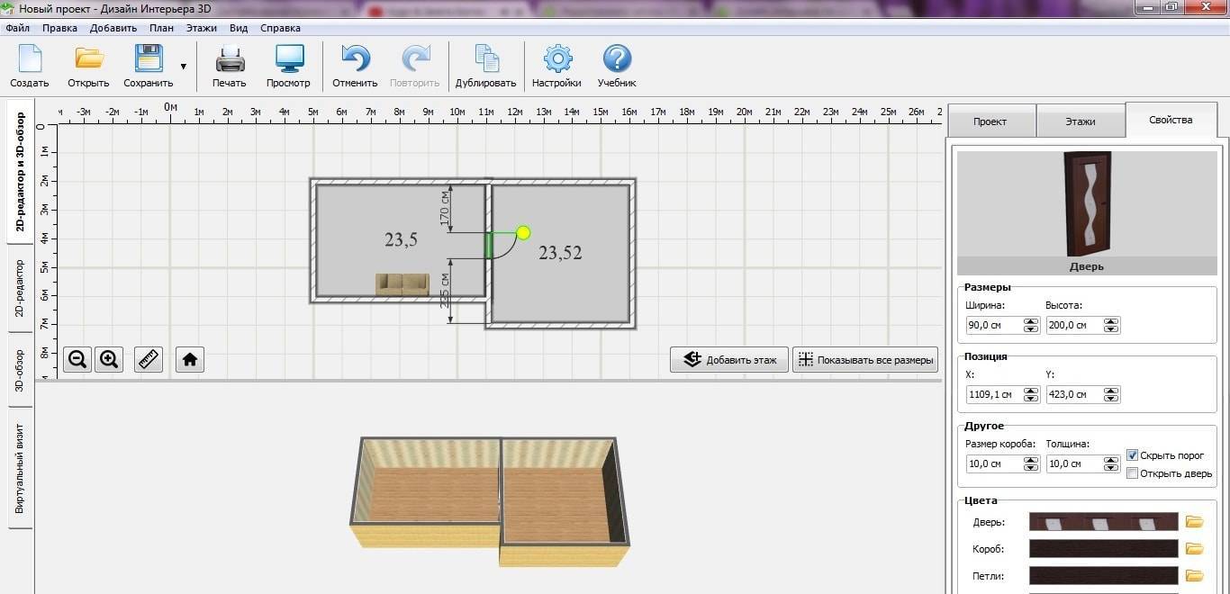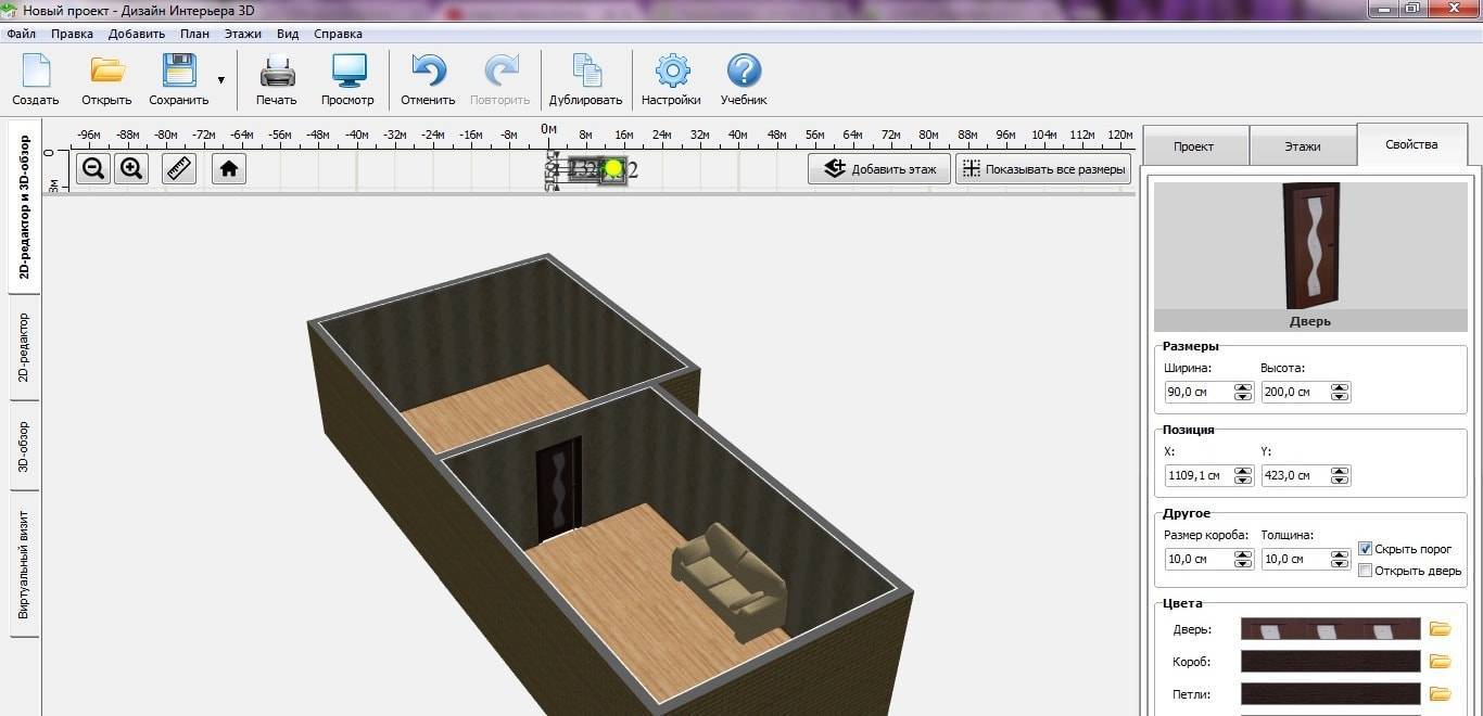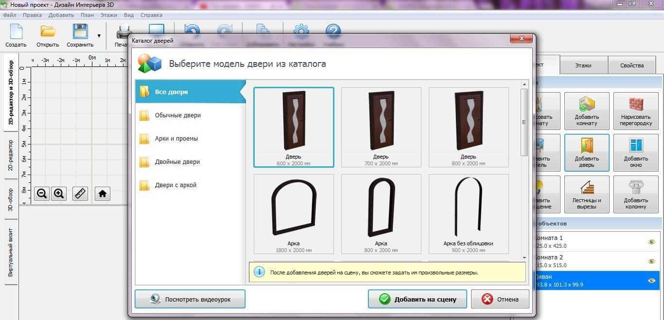![]() | После добавления дверей или арок, им можно задать требуемые размеры и цветовое оформление. |