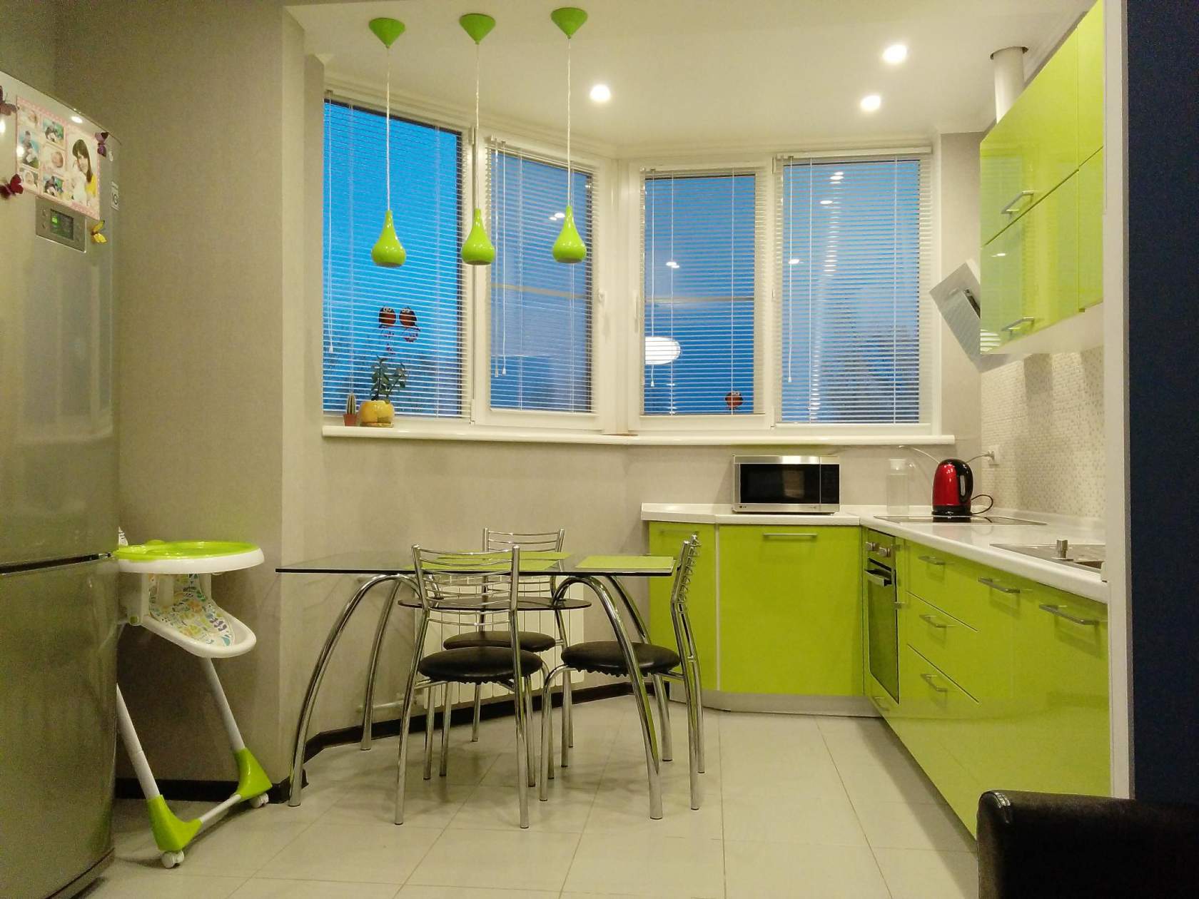 На кухне площадью от 13 до 16 м² поместится больше людей, а значит, вариантов ее планировки тоже намного больше. В ней станет светлее, если на балконе и фартуке над плитой поставить окна.