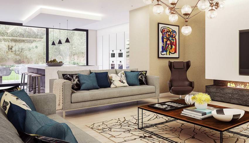 Дизайн ар-нуво занимает лидирующие позиции в оформлении помещений. Он привлекает легкостью, простотой, наличием плавных переходов, витиеватой мебелью и аксессуарами. Обстановка соединяет в себе несколько линий дизайна, объединяя их общей нитью – красивой растительной формой. Комната изобилует флористическими мотивами и узорами. Оформление идеально подойдет для просторных апартаментов или небольших помещений. Современная гостиная в стиле модерн станет удачным решением для создания комфортной обстановки, которая продемонстрирует превосходный вкус хозяев.