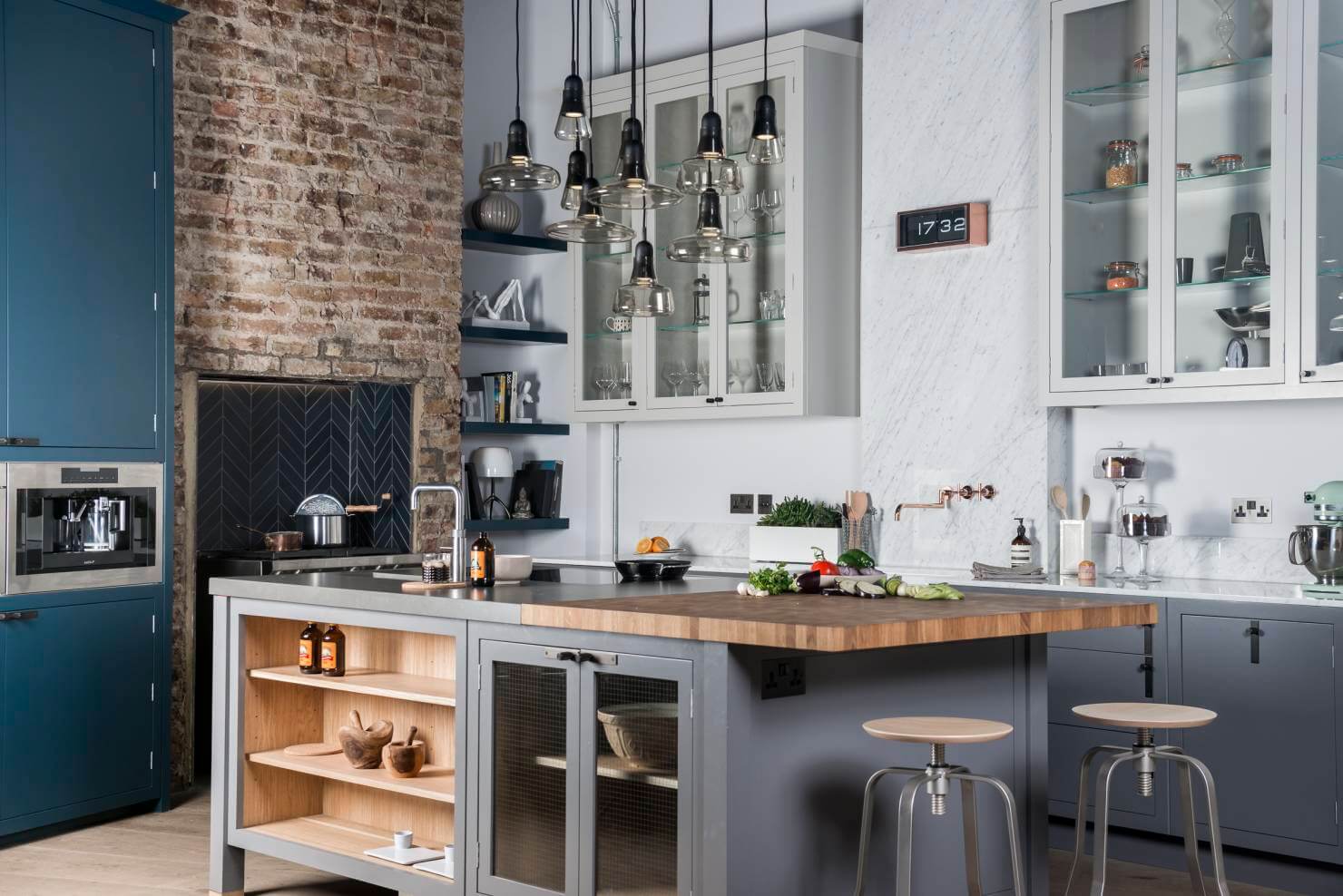 Здесь вы можете разместить предмет мебели, например, разделочный стол, расположенный в середине комнаты, это позволяет сосредоточиться на одной части кухни и отвлечь внимание от остальной части комнаты