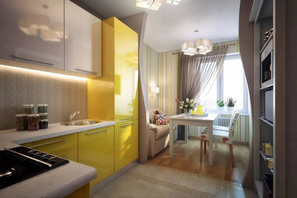 Для создания в квартире атмосферы комфорта и уюта помещение для приготовления пищи совмещают с зоной для приема гостей. Для этого сносят стену между этими комнатами. Несмотря на то что целью такой перепланировки является создание единого помещения, дизайнеры рекомендуют зонировать пространство с помощью световых акцентов или других элементов. К тому же можно оформить две зоны в разных цветах.