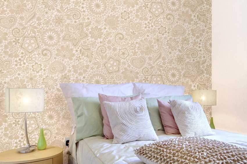 Есть бамбуковые, бумажные, флизелиновые и другие обои. Преимуществом спальни является то, что она не допускает появления влаги, как, допустим, кухня, поэтому практически любой вариант обоев подойдет для спальной комнаты.
