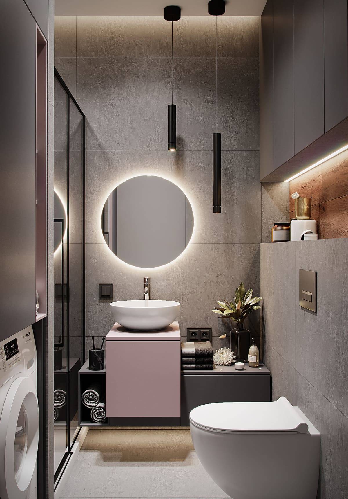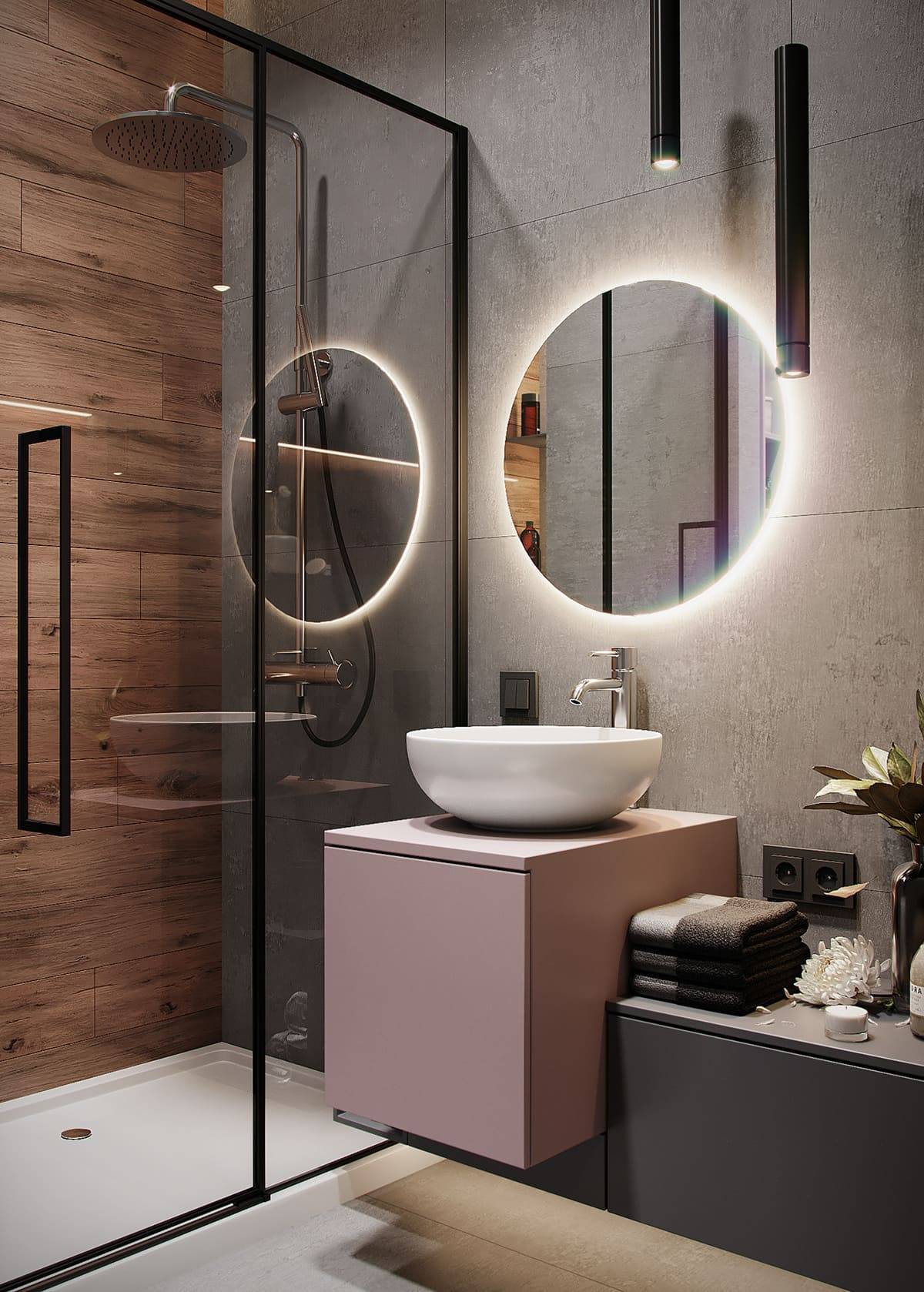 Среди тенденций дизайна интерьера 2021 активно продолжаются прошлогодние идеи. Бесспорным хитом остается оформление ванной комнаты материалами с текстурой и цветом бетона. В коллекциях плитки и керамогранита можно найти рисунки в елочку, имитацию кожи, шестиугольный и мелкий квадратный формат, мозаику и пр.
